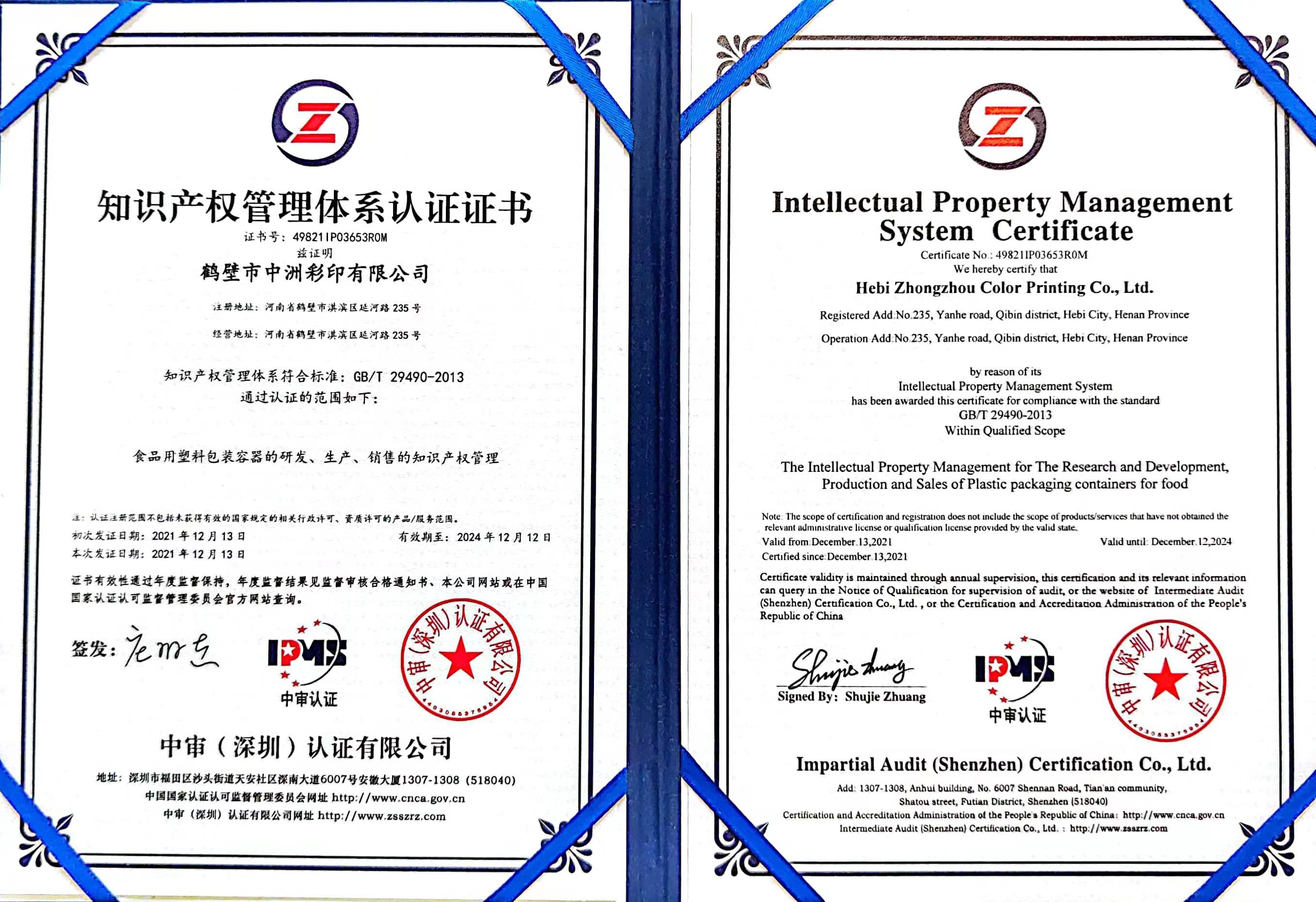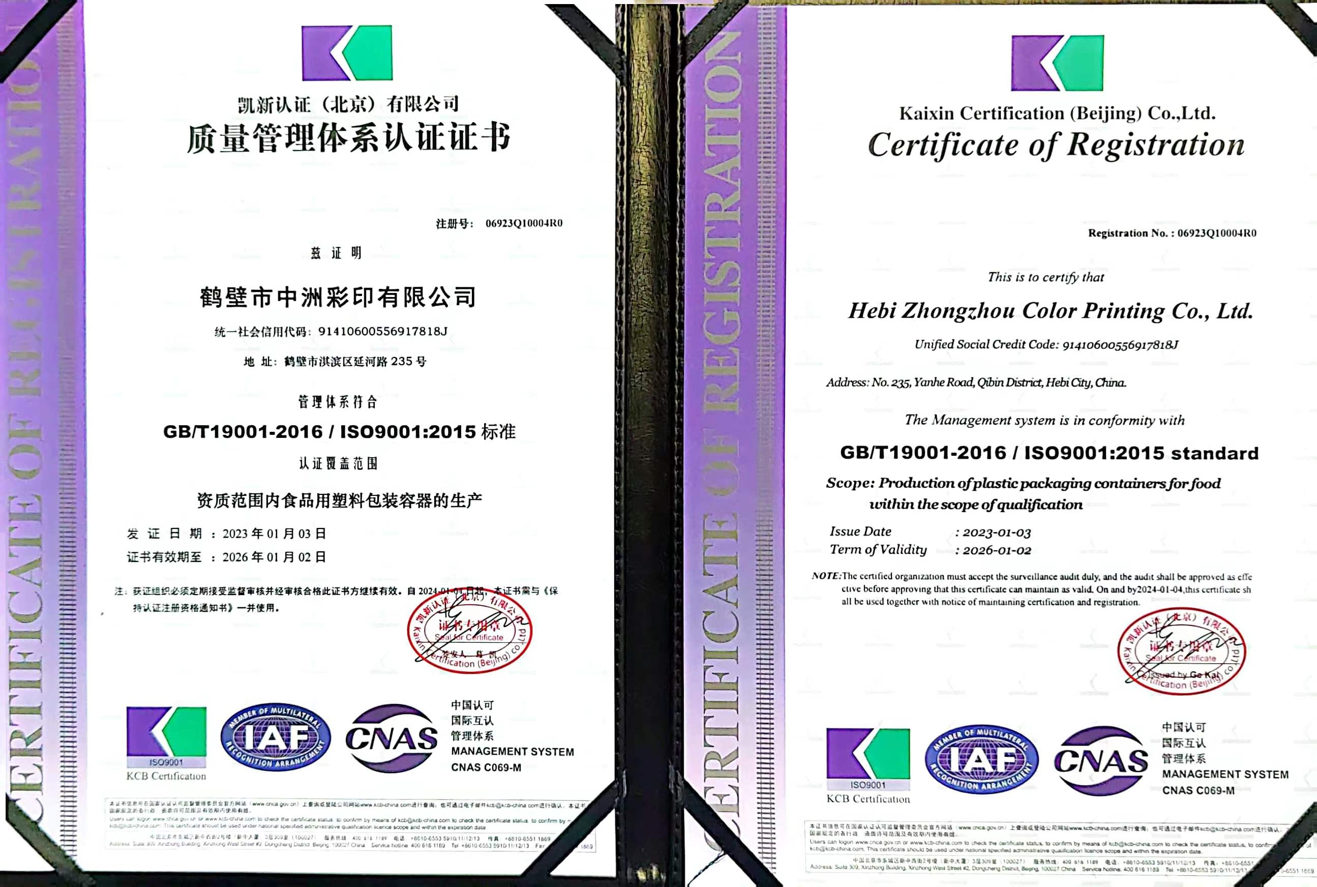 鶴壁市中洲彩印有限公司成立于2010年,位于鶴壁市開發區延河路235號,是一家集創意設計、制版、印刷、復合、制袋為一體的塑料軟包裝高新技術企業。公司占地42畝,建設有無塵凈化車間8000平方米?,F擁有中、高速電腦對版印刷機3臺,干式復合機1臺,無溶劑復合機3臺,制袋機20臺,自有設計工作室,總投資5000余萬元。公司現有員工120余名,其中專業技術人員50人,年產值1.2億元。公司于2020年1月份通過了ISO9001質量體系認證,是目前豫北地區較大的塑料軟包裝制作企業。 →